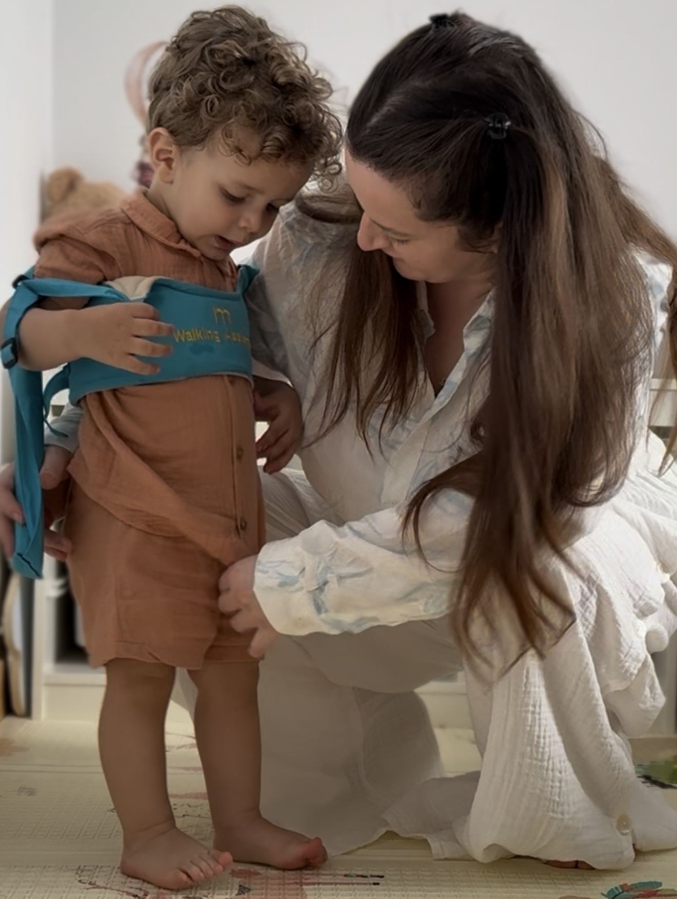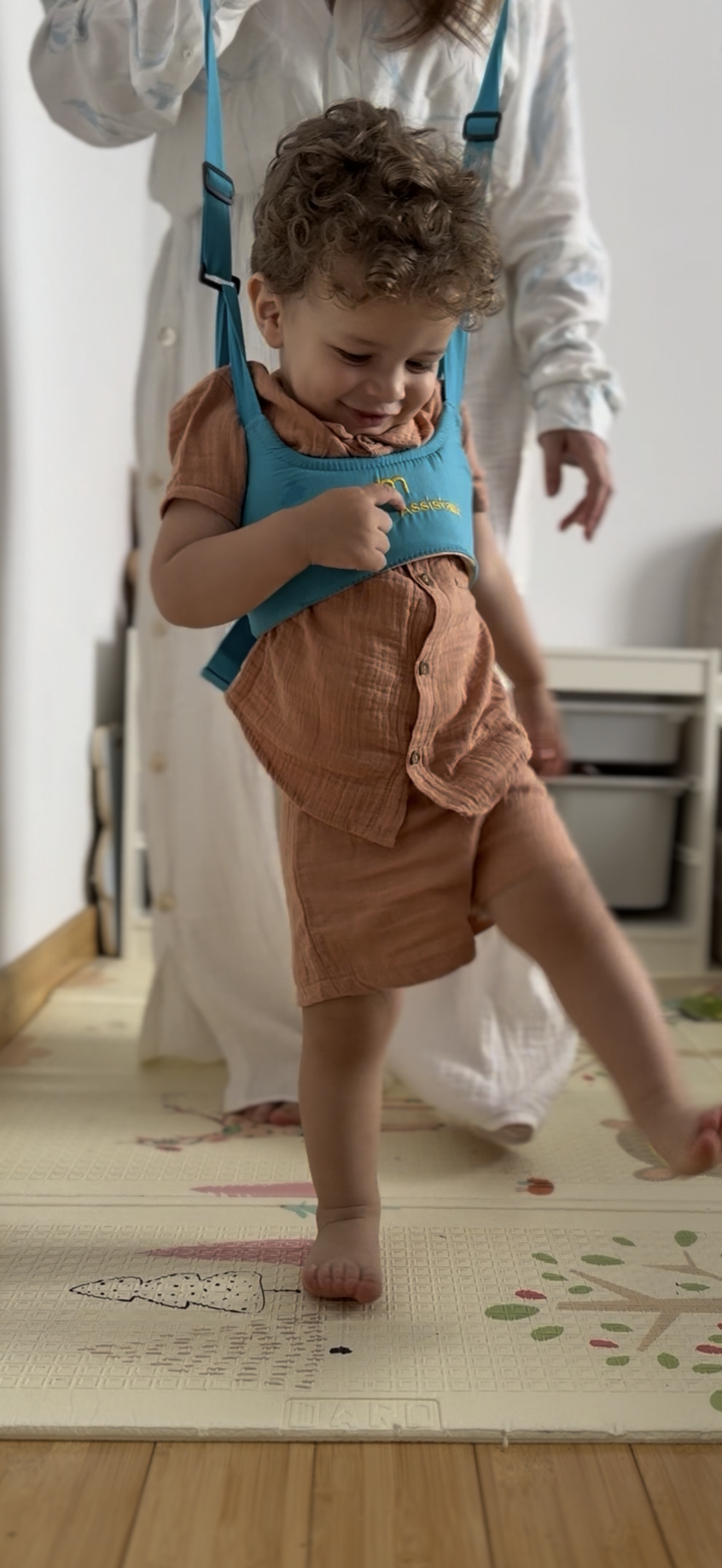 Nu lăsa durerile de spate să te copleșească în timp ce copilul tău învață să meargă. Cu Hamul Premergător poți ajuta micuțul să meargă fără să te apleci.
